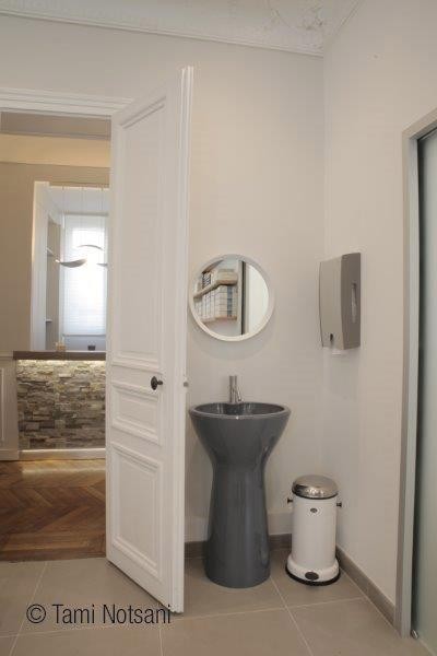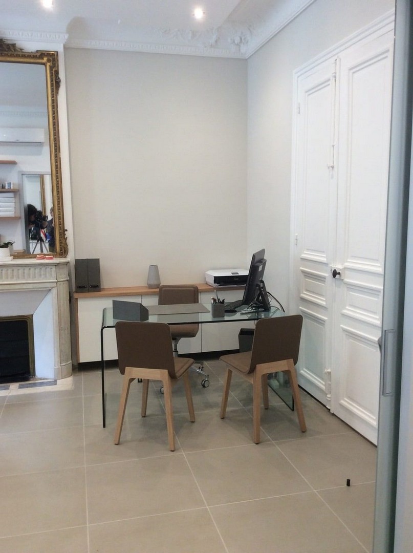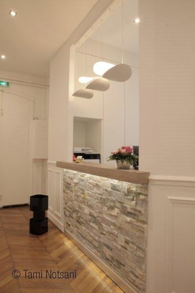 - Après l’agencement, nous avons réussi à gagner de la place au niveau de l’accueil en posant des placards sur-mesure allant jusqu’au plafond.