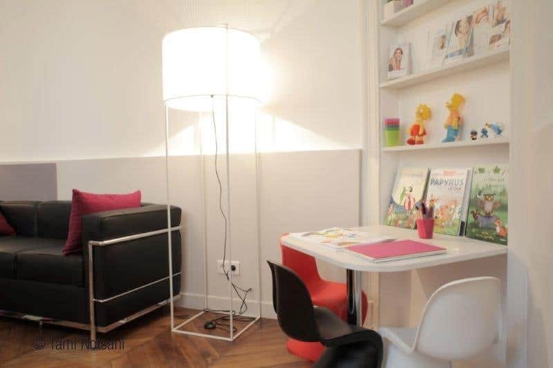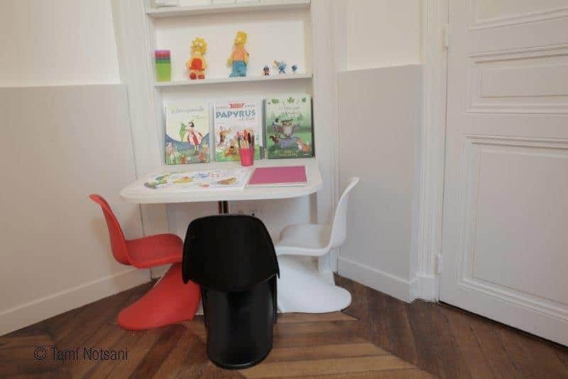 - La cheminée ancienne a été transformée en coin ludique pour les enfants.