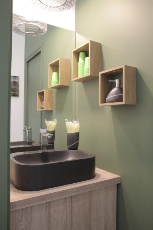 Dans ce projet, il y a eu l’implication de la praticienne pour le choix des couleurs et des matériaux. Cela a été primordiale afin de coller au plus proche du plan et ainsi répondre aux besoins pratiques et des souhaits en matière d’aménagement technique et décoratif.