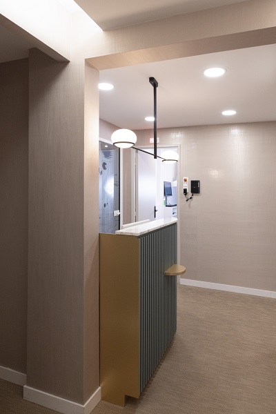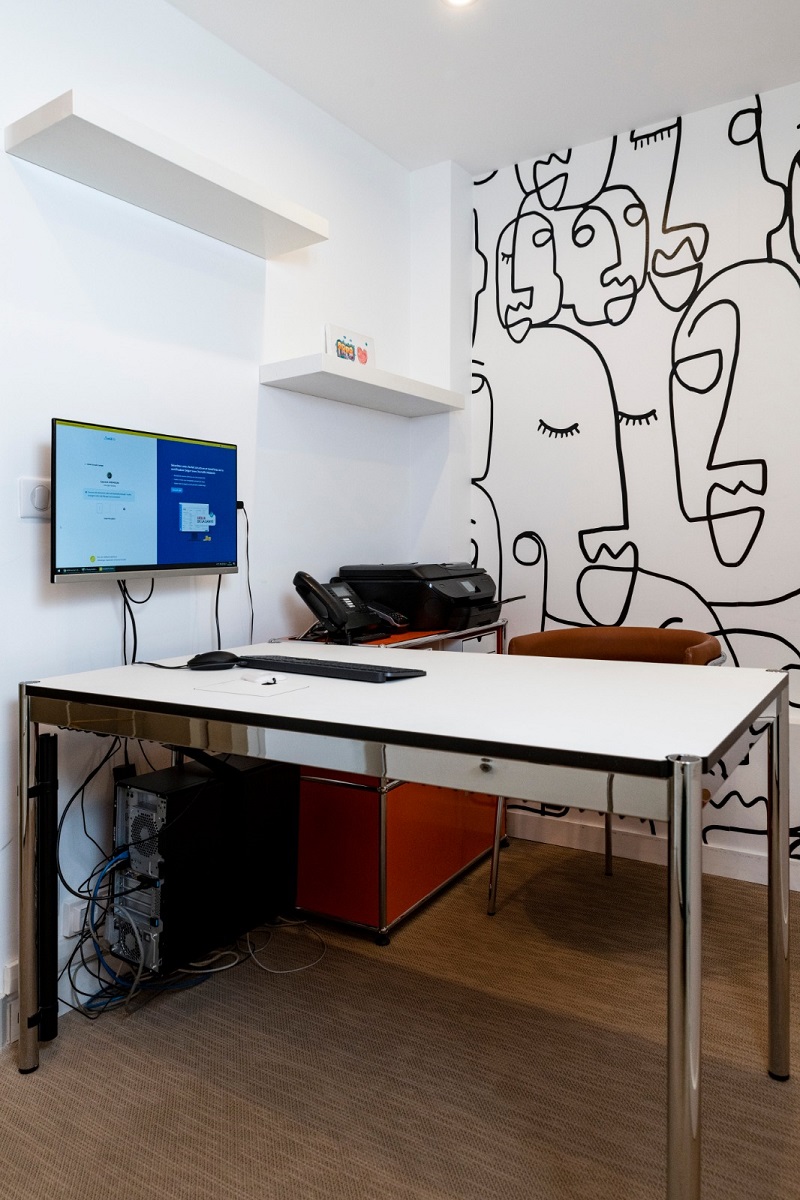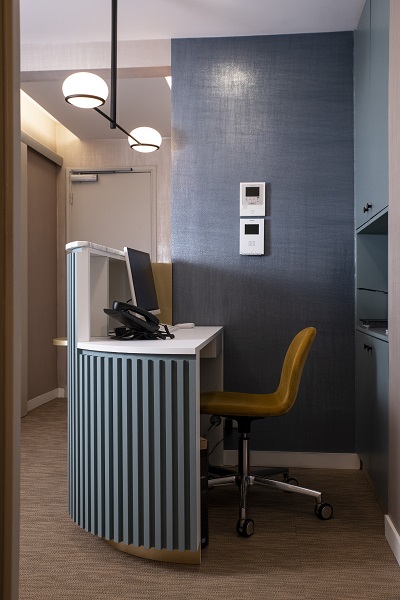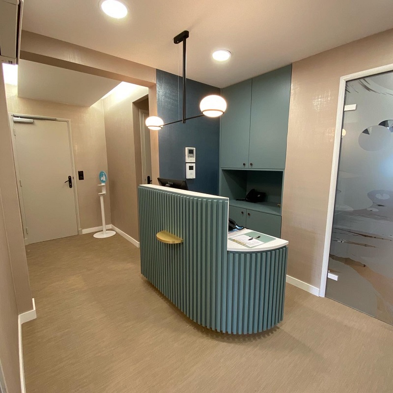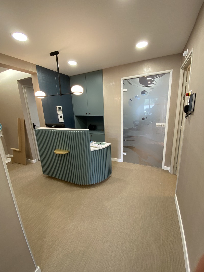 AD17 a été sollicité pour la rénovation complète d’un cabinet dentaire de deux praticiens à Boulogne. Nous avons effectué un relooking total des cabinets. Nous avons réalisé un grand travail de changement de façade, de stérile et de bande d’accueil. Les meubles dans les cabinets ont été conservés. Nous avons également mis des papiers peints et réalisé un jeu de couleur pour donner un effet chaleureux et moderne. Découvrez le rendu de cette rénovation en images :